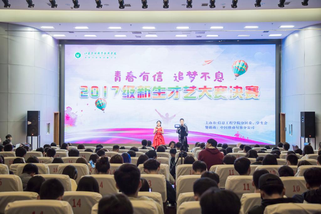 为丰富校园文化,深入挖掘新生艺术特长,在校团委的统一部署下,信息工程学院分团委、学生会于10月23日19:00在图书馆报告厅举行2017级新生才艺大赛决赛,学院2017级本部专业全体新生观看了此次比赛。