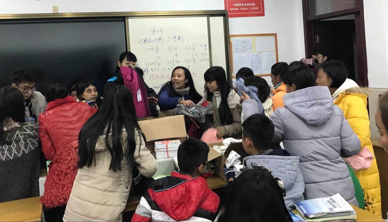 12月17日下午,信息工程学院团委组织志愿者代表前往句容四中分发爱心衣物,并开展交流活动。活动现场,109名云南少数民族交换生脸上洋溢着笑容。