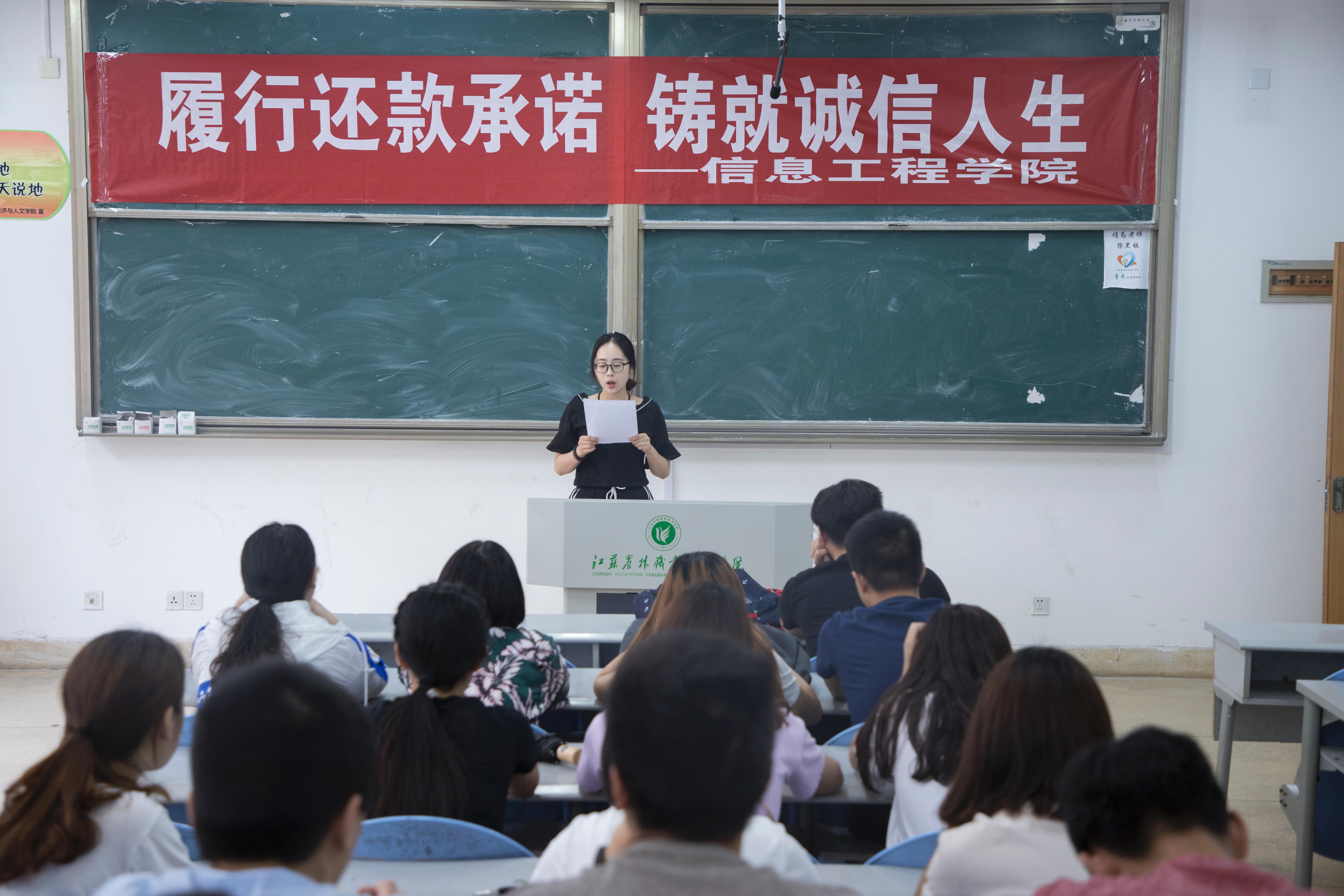 本次系列活动分为资助诚信教育沙龙、“人人知诚信、人人讲诚信”主题班会、“诚信大家谈”毕业生代表谈诚信和“履行还款承诺、铸就诚信人生”毕业生诚信教育大会四个环节。主题活动历时10天,覆盖全院本部40个班级1133名在校生。
