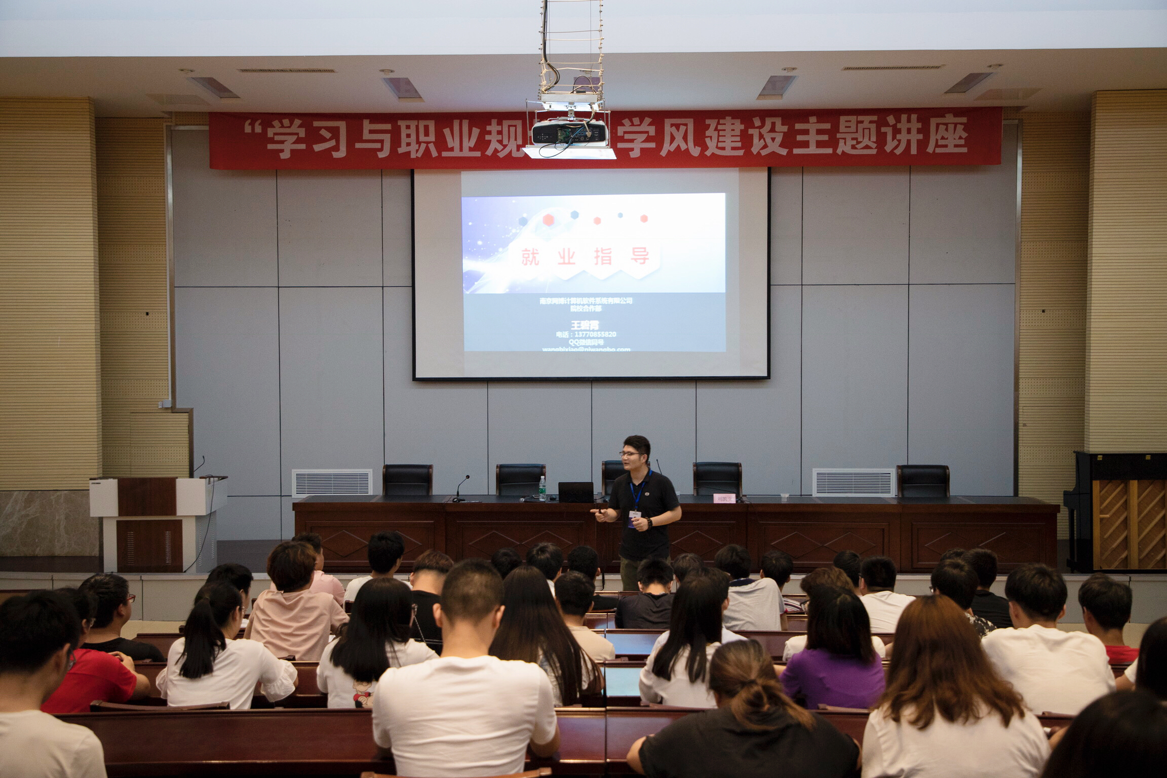 为了帮助学生树立学习目标、建立长期规划,6月14日19:00,信息工程学院在研发楼报告厅举行“学习与职业规划”学风建设主题讲座。本次讲座邀请南京网博计算机软件系统有限公司职业规划顾问、职业素养讲师王碧霄老师主讲,学院近200名学生参加了此次讲座。
