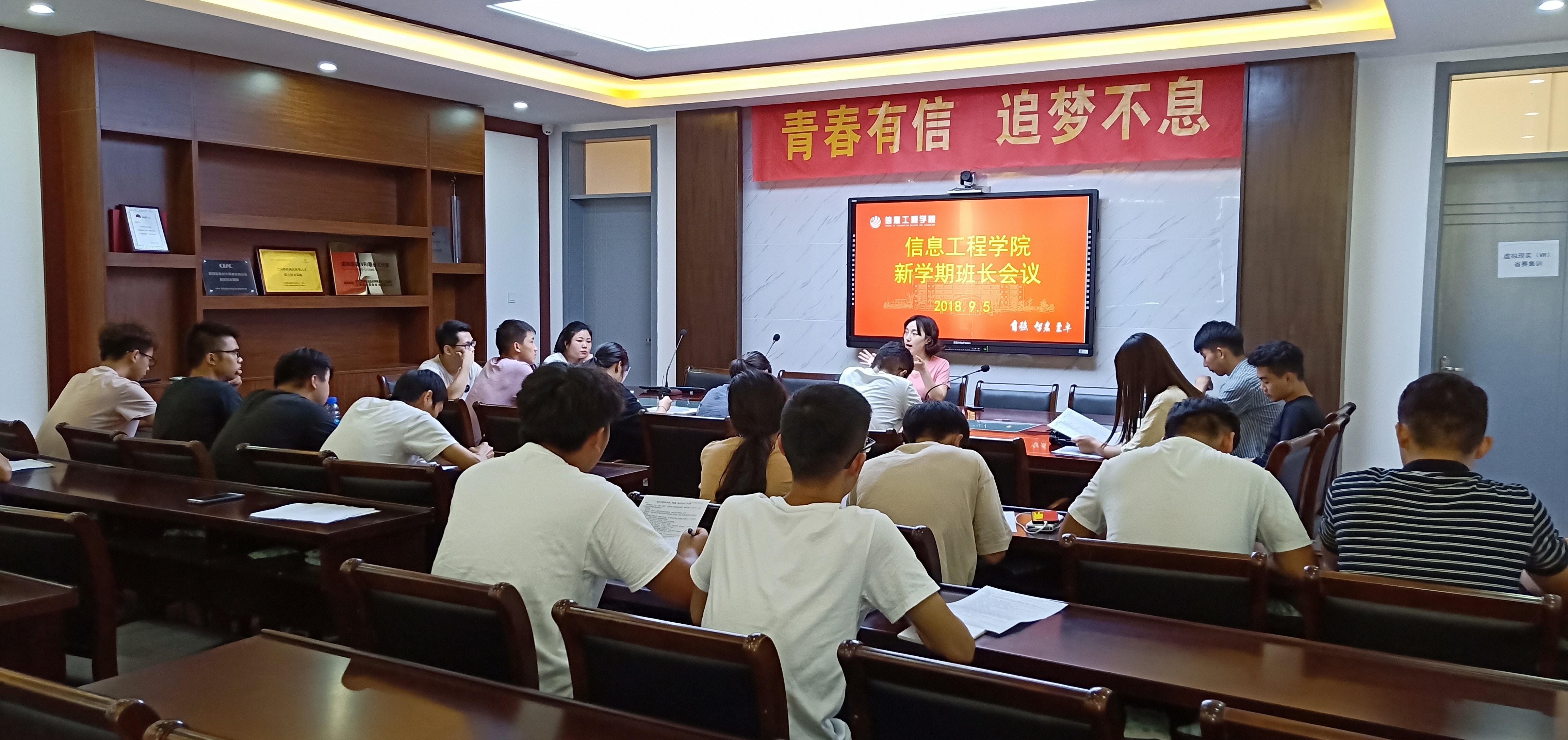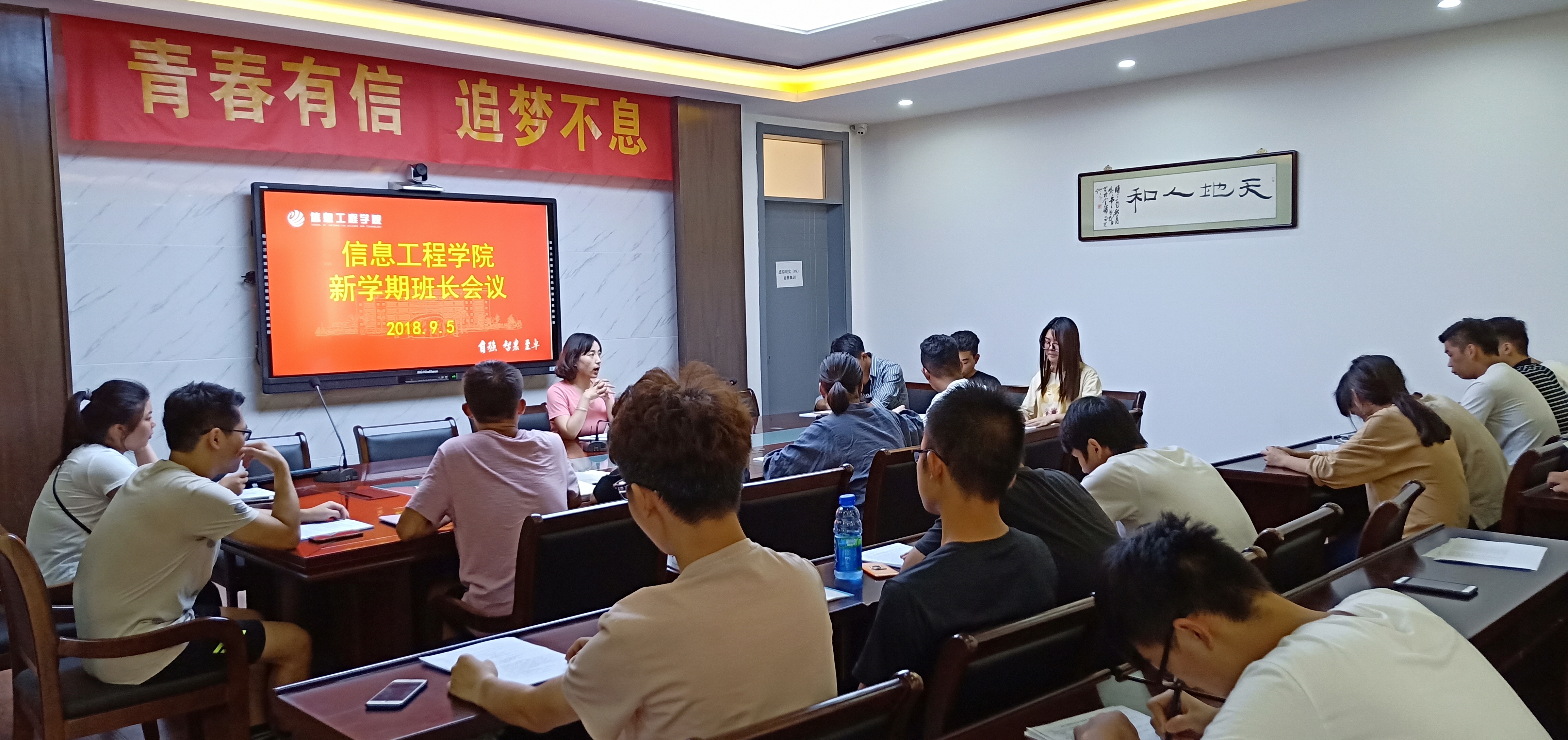 新学期伊始,为了更好的开展班级工作,加强新学期学院学生组织与班级的联系,信息工程学院学工办于9月5日在工科楼B404召开新学期第一次班长会议。