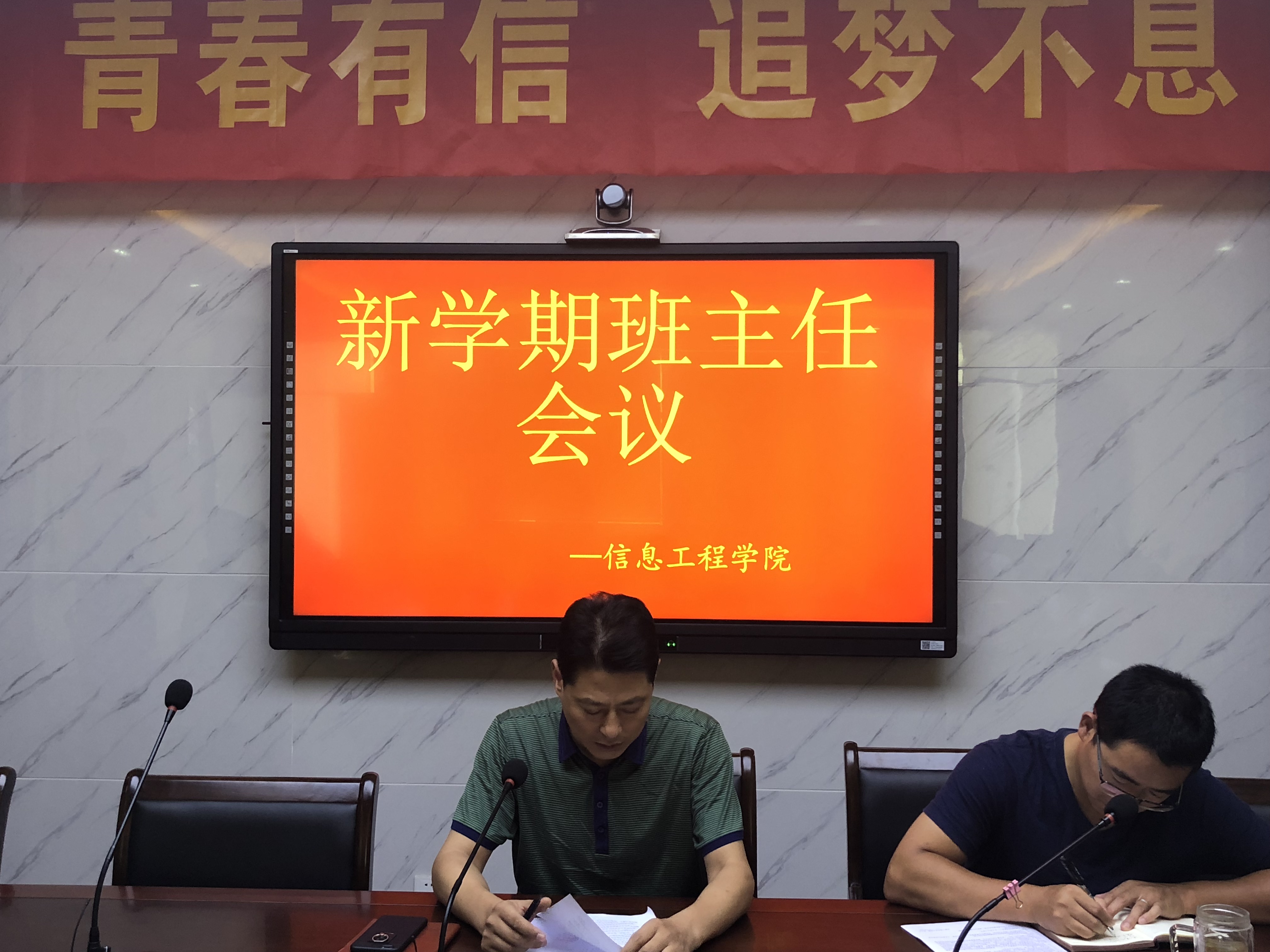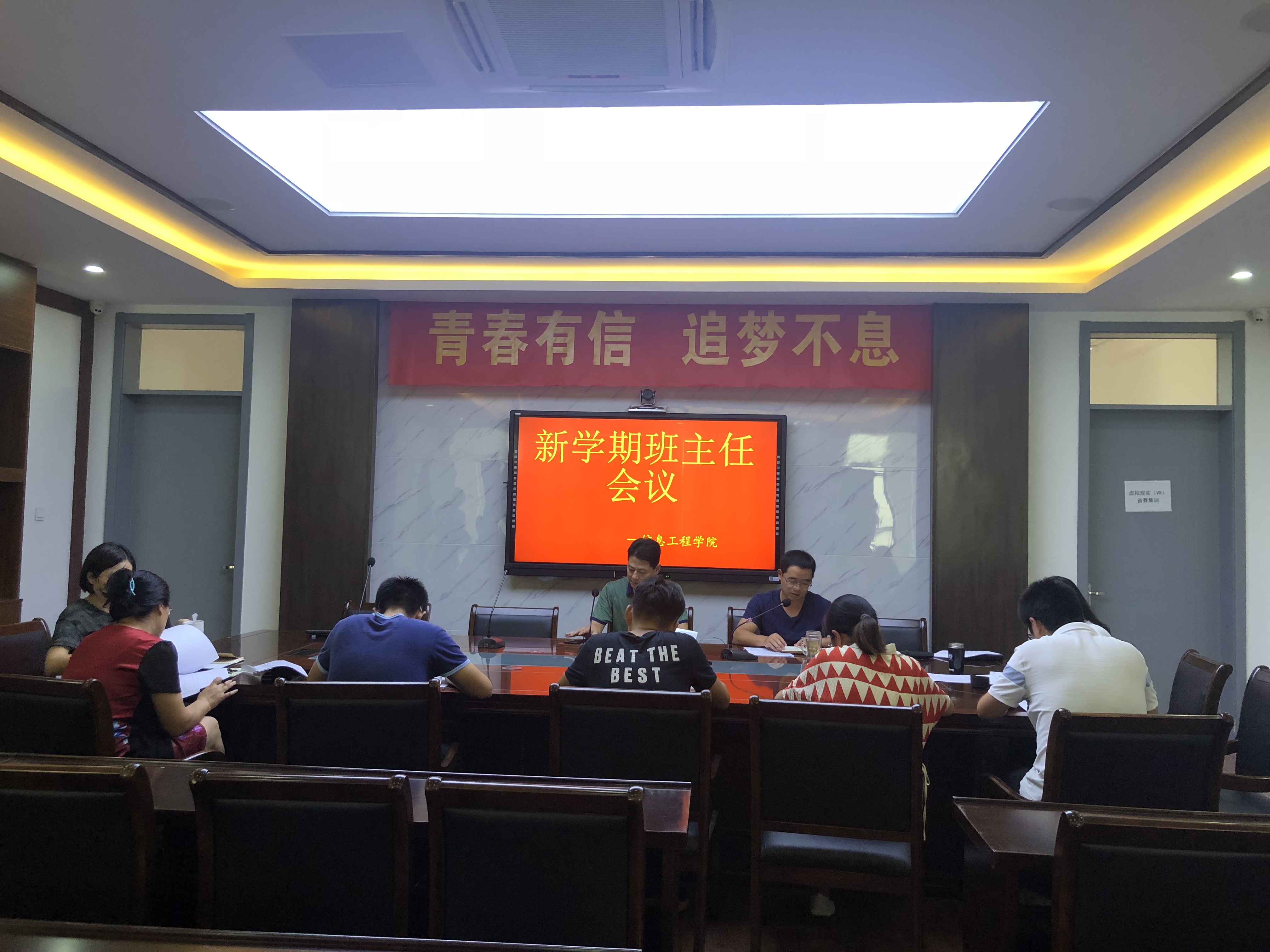 为保障开学初学生管理工作顺利进行,提高班主任整体素质,进一步增强班级管理工作的针对性和实效性,信息工程学院于9月5日在工科楼会议室召开了全体班主任会议。会议由院党总支副书记陈兵主持,院党总支副书记经松、学工办全体辅导员及全体班主任出席了此次会议。