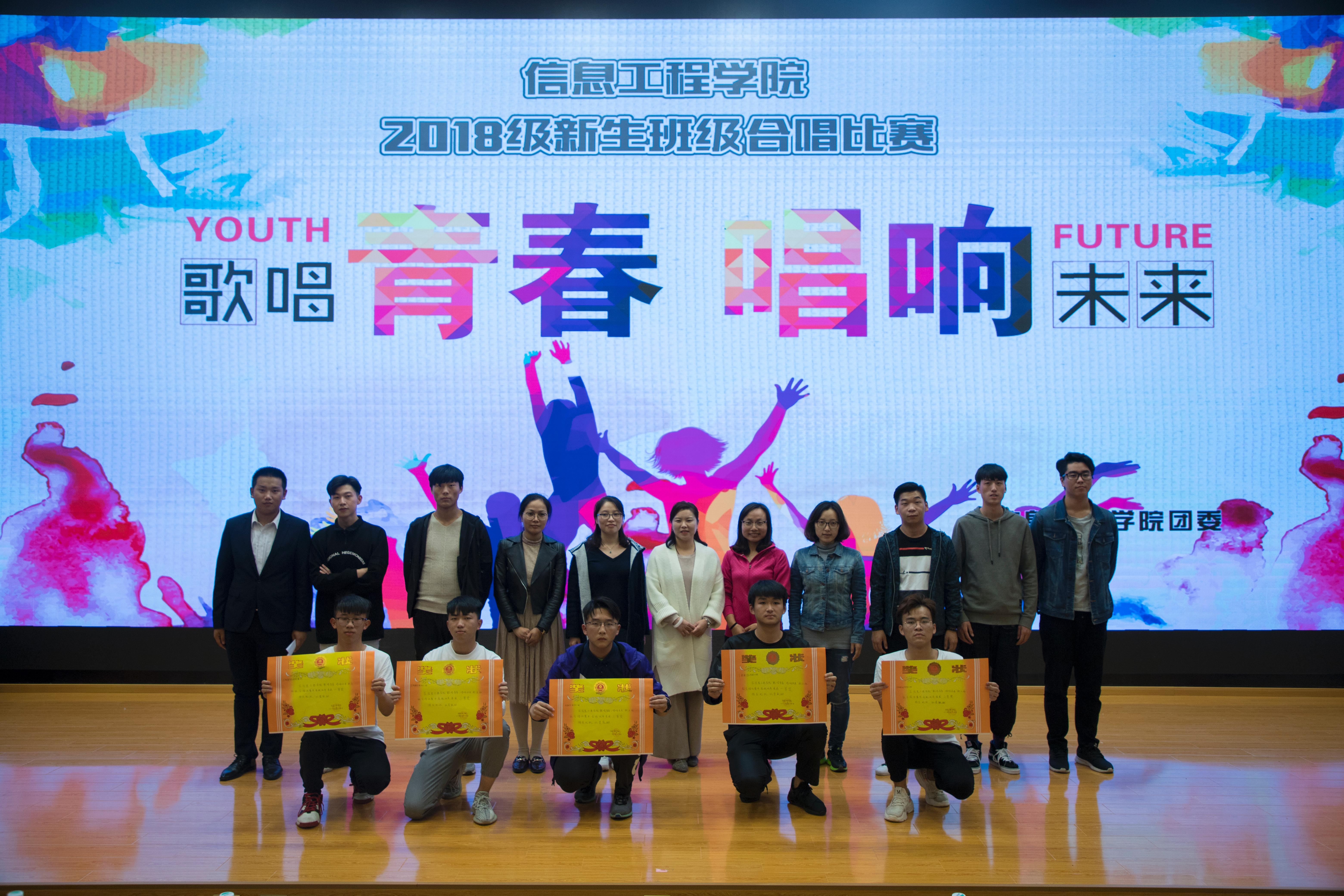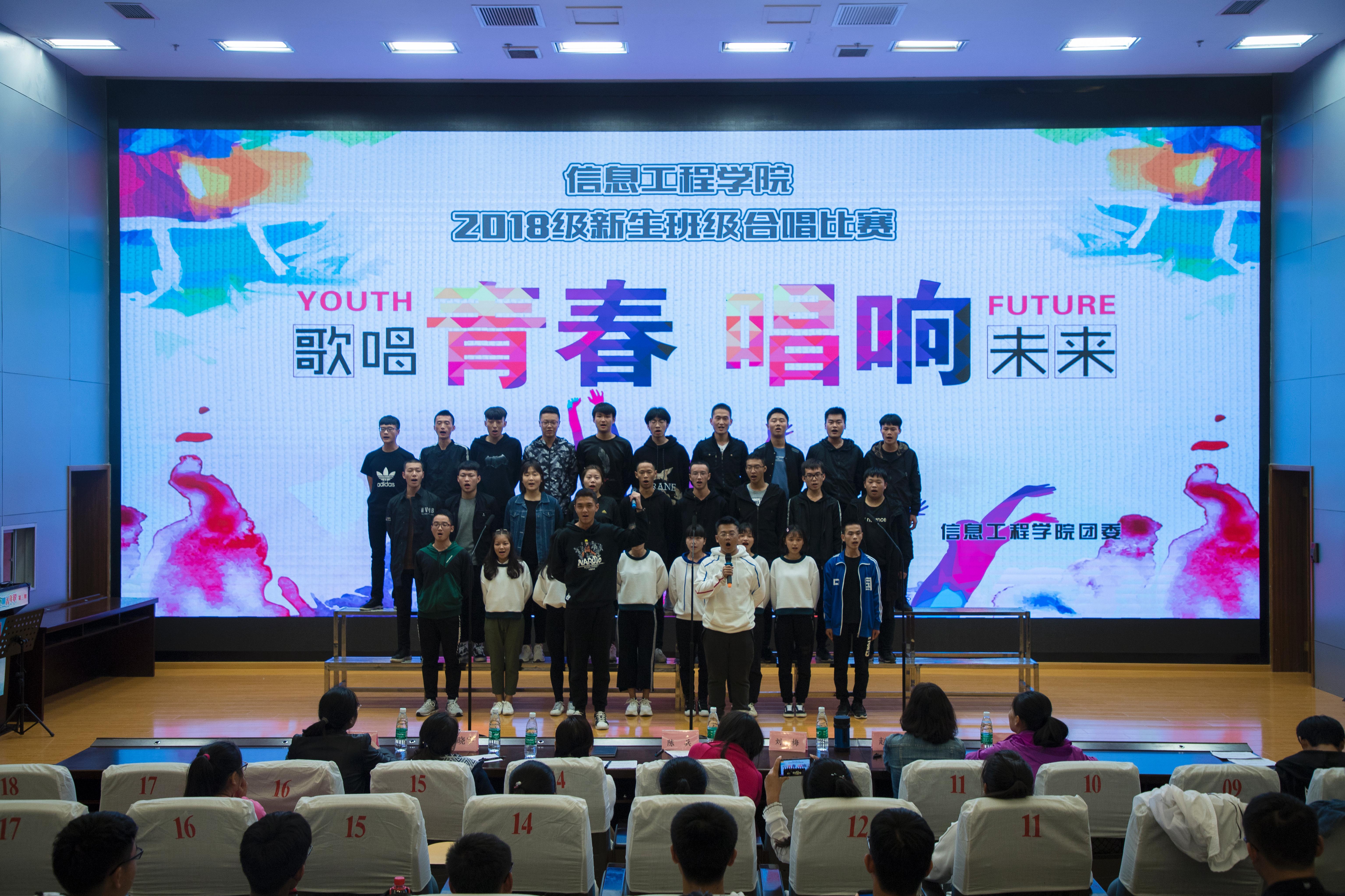 10月24日晚上,信息工程学院在图书馆报告厅举行了以“歌唱青春,唱响未来”为主题的2018级新生班级大合唱比赛。学院特邀校外音乐专业老师张燕担任评委,党总支副书记陈兵、新生班主任以及学工办老师出席了本次比赛。