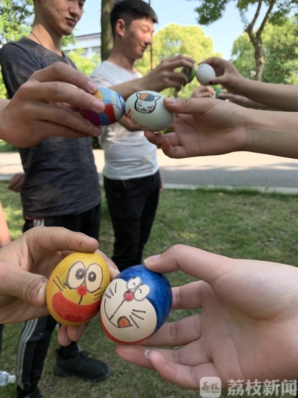 5月4日,信息工程学院团委组织30名数字媒体专业同学追忆网兜里的童年乐趣,开展了别开生面的立夏斗蛋比赛。同学们将自己必胜的信念画在蛋上,蛋头对蛋头,蛋尾对蛋尾,相撞后破壳的蛋就被吃掉,最后完好无损胜出的就是“蛋王”。同学们用彩色丝线编成五颜六色的网兜,将“蛋王”装在网兜里,挂在枝繁叶茂的老树上,寓意生生不息的希望。
