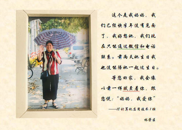 谁言寸草心,报得三春晖。活动通过与母亲合影、制作蛋糕、创作诗歌、书法、绘画、Vlog视频、为母亲梳妆等不同创作形式表达对母亲的感恩之情。言语间皆为祝福,眉目里都是贴心。同学们有的为母亲准备礼物,有的献贺卡送祝福,有的为母亲梳妆打扮,有的为母亲分担家务,在实践活动中与母亲交流,增进感情,更让母亲感受到满满的爱。
