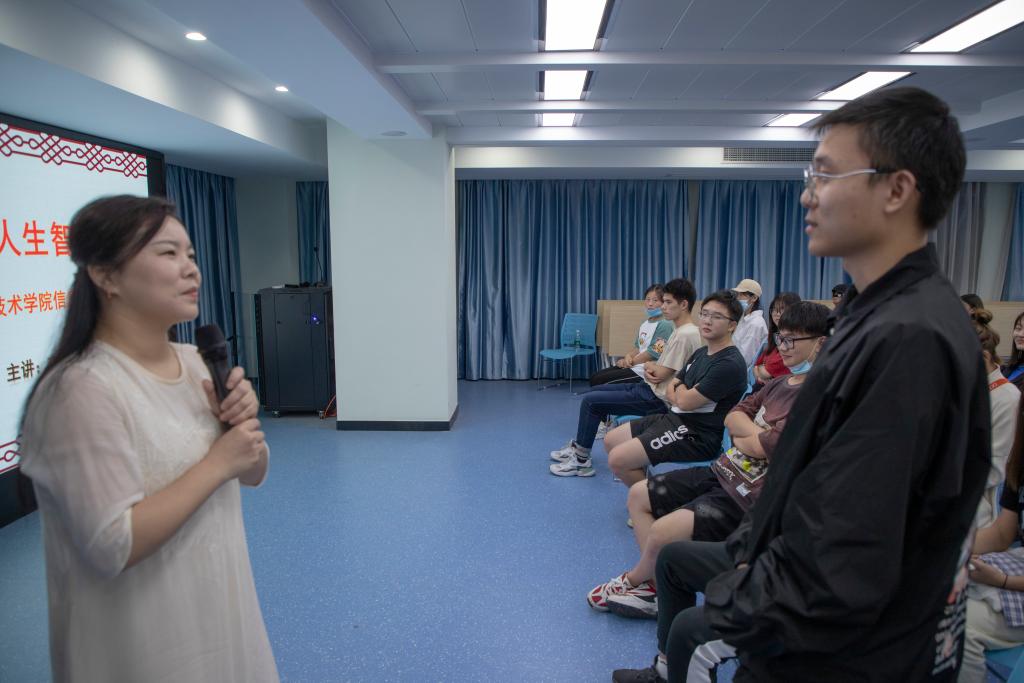 张燕老师以“自我修炼与人生智慧”为主题,从一则故事到一份责任;从个人角度到微小的细节;一步步带领同学们走进心里深处,寻找最真实的自己。价值、能力、兴趣三方面环环相扣,这也逐步解开了我们心理的神秘面纱。她提到,价值感等于幸福感,以个人价值观塑造个人生活的幸福感,将个人的价值体现在生活的细枝末节,付诸于行动。讲座中,张燕老师从各位学生干部的角色定位、职责及任务出发,以故事案例映射出健康的心理思维。随后,同学们各抒己见,讲述自己在生活工作中的经历,并谈到了大学生价值观等内容。张燕老师逐一解答,给大家指明了解决问题的方向与方法,使在场的同学们受益匪浅,如沐春风。
