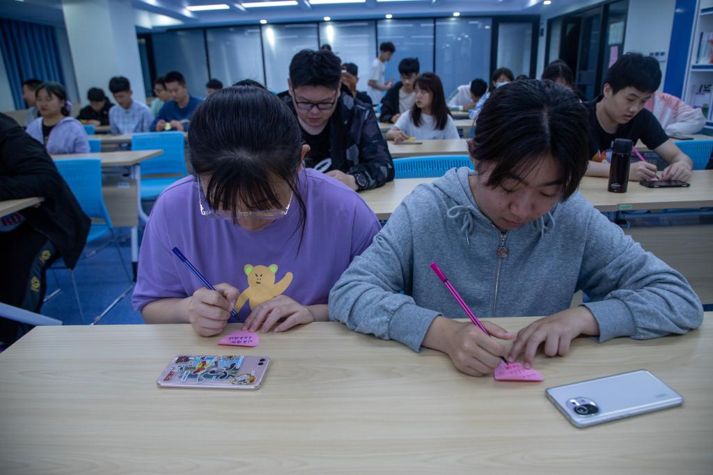 筑梦成长共绘未来,负责资助工作的老师鼓励每一位受助同学都要正确理解艰苦奋斗的意义,用努力战胜困难,用行动成就未来,尽早树立目标,让大学生活更充实。在场的每一位学生也纷纷拿起画笔在许愿墙上写下自己的青春梦想。