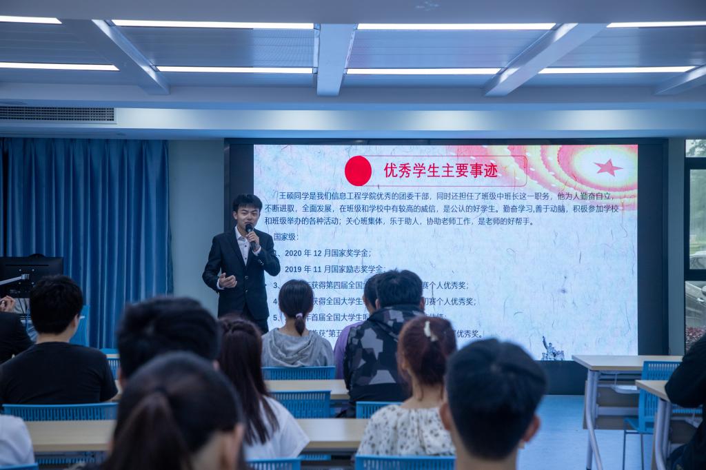 此次活动分为资助政策宣传、“托起明天的太阳”学生励志故事分享、筑梦成长共绘未来三个环节。首先,负责资助工作的老师详细给同学们介绍了国家学生资助政策体系与具体资助项目的办理流程。重点介绍本月生源地信用助学贷款的具体政策实施办法,帮助同学们初步掌握贷款政策,并希望大家能做好宣传员,营造“人人知道助学、人人参与助学”的良好氛围。随后,学院邀请了国家奖学金获得者王硕和江苏省三好生获得者韩聪两位同学分享了他们的青春成长经历,展现了新时代大学生刻苦学习、努力上进的精神面貌。