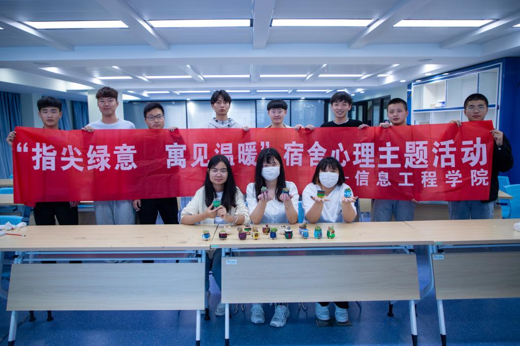 为促进学生身心健康发展,营造和谐的寝室文化氛围,5月24日晚信息工程学院在工科楼大学生活动中心开展“指尖绿意,寓见温暖”宿舍心理主题活动。