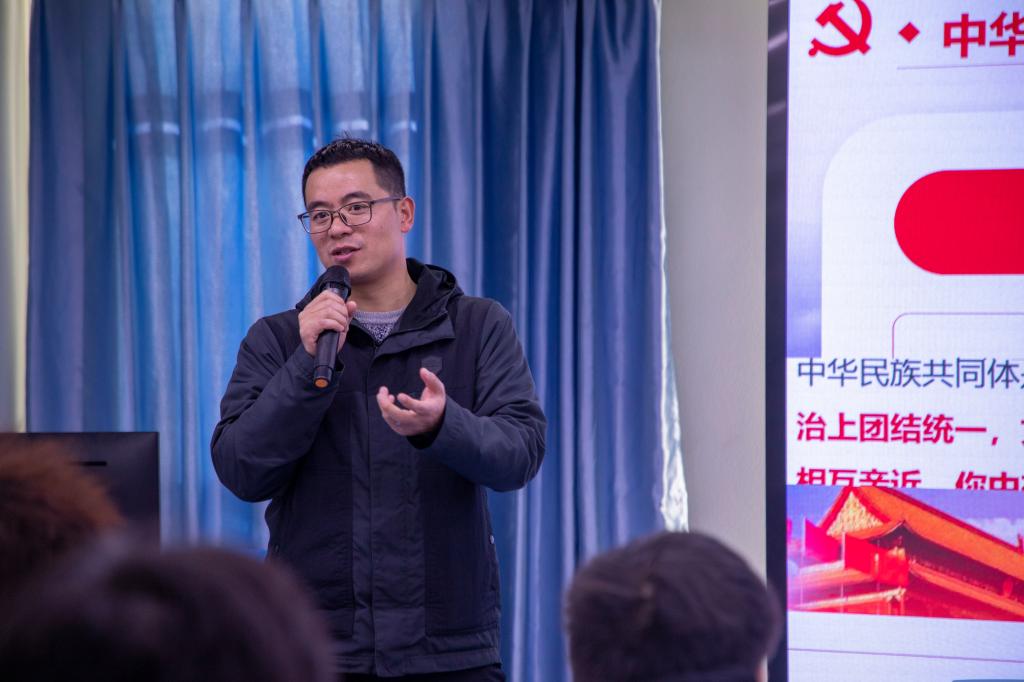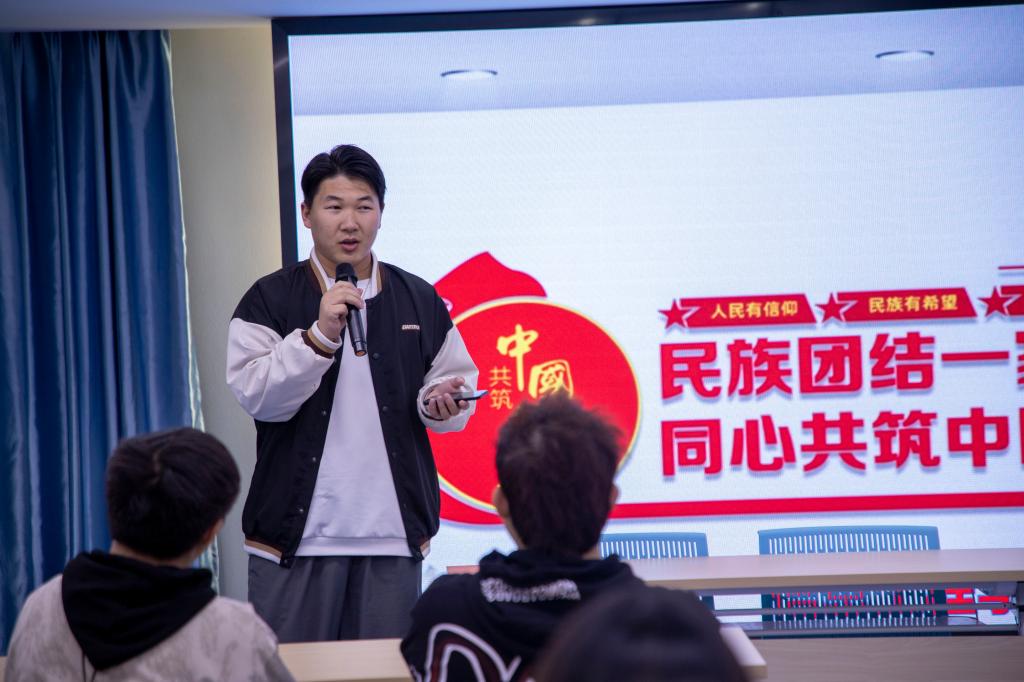本次活动分为四个部分。第一部分是学院党总支副书记陈兵老师为同学们讲民族团结的主题党课。中国是一个多民族、统一的国家,各民族共同创造了辉煌的成就。新中国成立以来,我国实行民族区域自治制度,坚持民族团结、共同进步,形成了“你中有我、我中有你,谁也离不开谁”的多元一体格局。陈兵老师希望少数民族同学坚定理想信念,加强专业学习,为民族地区现代化建设贡献自己力量,注重本民族优秀文化的传承和发展,宣传好民族团结,做好民族团结的守护者;第二部分是参会同学参观党史纪念馆。在我校的党史纪念馆中马克思学院的陈旭文老师为大家给学生上了一堂形象、生动、直观的党史教育课,引导大家继续深入学习党的历史,坚定理想信念,继承和发扬党的光荣传统,以崭新的面貌投入到学习中。第三部分是少数民族学生交流。少数民族同学在一起交流民族特色,学习民族语言。大家情绪高涨,交流热烈,充满着欢声笑语营造了团结友爱和谐的浓厚氛围。最后环节,学院为到场的少数民族学生发放了定制的象征“温暖”保温杯。