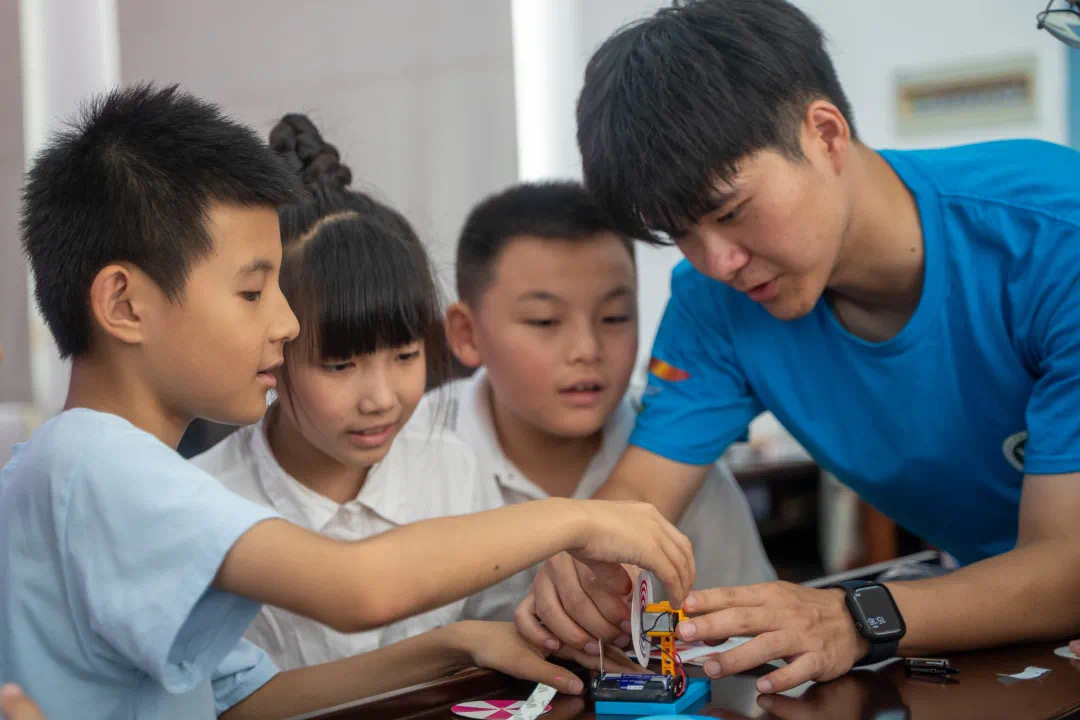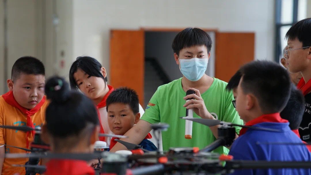 随着一架无人机划空而过,带领小朋友们在科技的“天空”中翱翔。孩子们仔细聆听着志愿者讲授的无人机的工作原理和操作步骤,昂着头紧盯着悬停在空中的无人机,稚嫩的面庞充满了笑容,连连发出“哇塞”的惊叹。与此同时,大家通过无人机虚拟操控的体验,切身感受到了祖国科技的进步,孩子们也了解到了我国航空航天事业的发展历程。随后,他们来到机器人工作室以及国家级现代农林虚拟仿真实训中心,机器人舞蹈、VR虚拟仿真体验、DIY简易机器人组装、光学转盘小制作、发动机原理小制作等科技小实践,带领孩子们走进科技的“海洋”,面对祖国科技事业的迅猛发展,孩子们不禁说道:“我也要像志愿者哥哥姐姐们一样,好好学习科学知识,长大以后建设我们美丽的祖国!”科技强国的种子在孩子们的心中慢慢发芽,他们也将带着实现伟大中国梦的理想,在建设社会主义现代化强国的道路上继续前行。