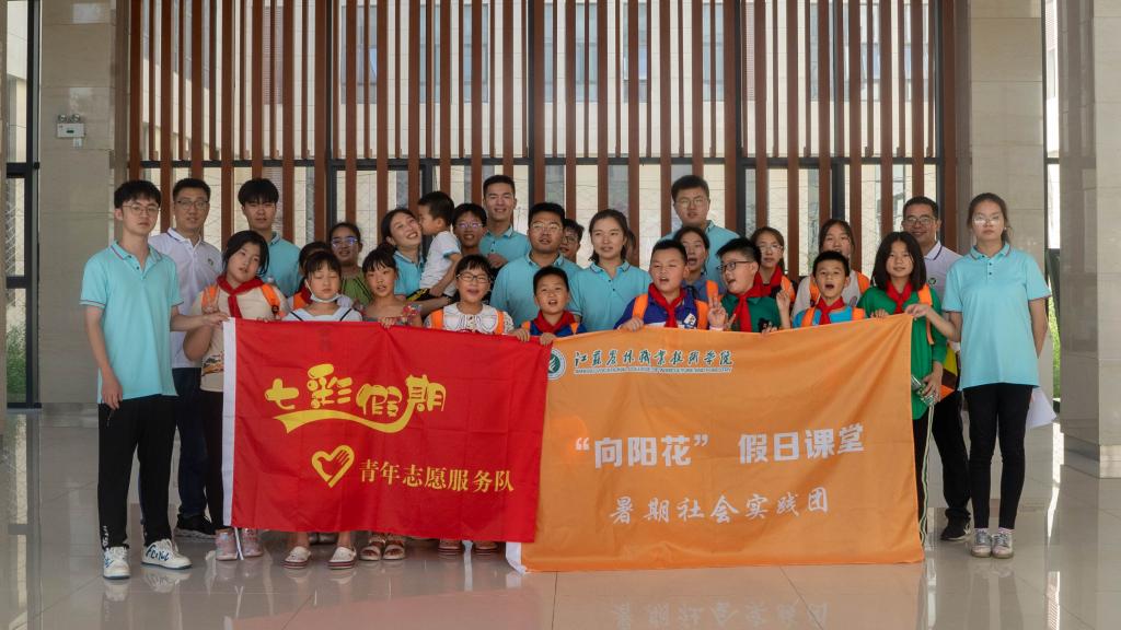 向阳花开,逐光前行,心有暖阳,不惧风雨。活动前,信息工程学院“向阳花”假日课堂暑期社会实践团的志愿者为天王镇白沙村和茅山镇城盖村革命老区的孩子们送来的书包及礼物,满满的关爱让孩子们的脸上洋溢出幸福的笑容。孩子们在欢声笑语中开启了属于他们的“七彩筑梦”之旅。