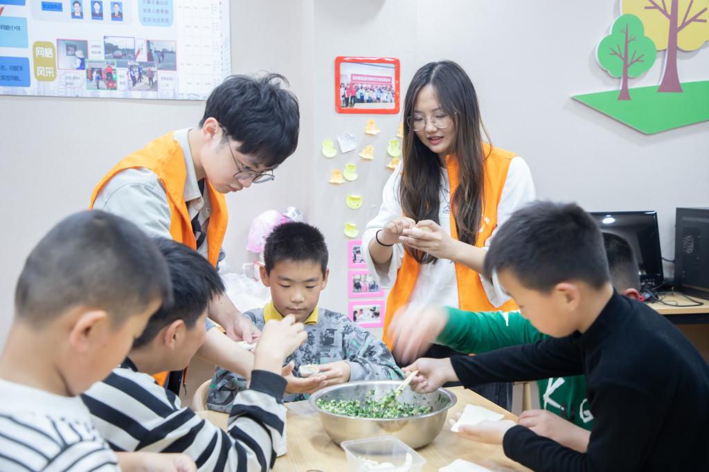 活动中,志愿者为小朋友们讲解消防安全知识,传授消防逃生小技巧,和小朋友们快乐互动。随后,志愿者带领小朋友走近大自然,开展户外游戏,感知季节的变化,探索大自然奇妙世界。活动最后,志愿者教小朋友们包饺子、煮饺子,吃上自己亲手做的饺子,小朋友脸上洋溢着自信的笑容,心里也开出了一朵花。
