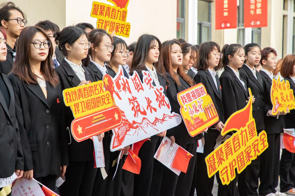 有国才有家,国安才有家宁。4月12日,在第八个全民国家安全教育日来临之际,学院开展“凝聚青春力量 守护国家安全”主题教育活动,通过国旗下演讲、青春宣言、“我为国家安全筑长城”等系列活动引导全体学生关心国家安全,自觉维护国家利益。