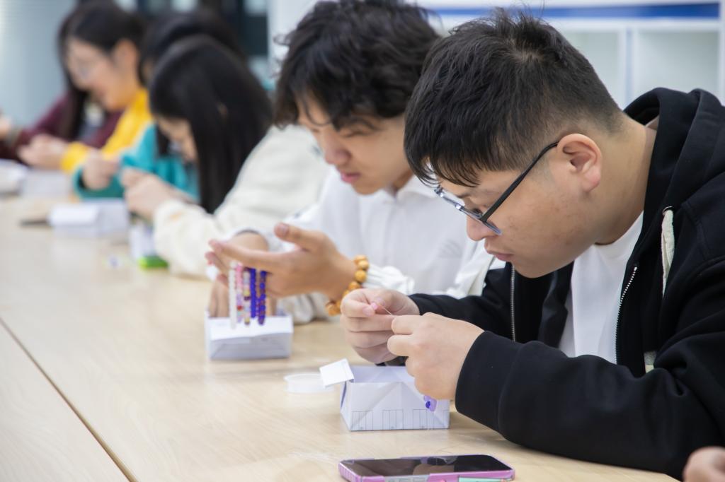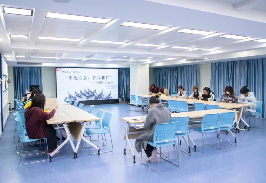 为了丰富同学的的课余生活,增加同学们的交流沟通机会,信息工程学院艺手愈心手工坊于4月26日下午在工科楼大学生活动中心开展了“串连心意,你我相伴”手工串珠活动,信息工程学院各班心育委员参加了此次活动。