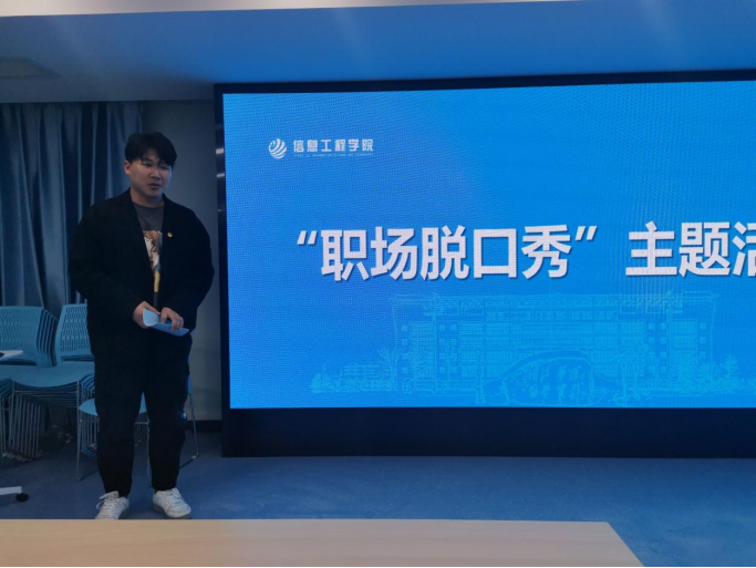 为培养学生的表达能力和现场反应能力,3月30日,信息工程学院在工科楼一楼路演中心成功举办了2021“职场脱口秀”主题活动。
