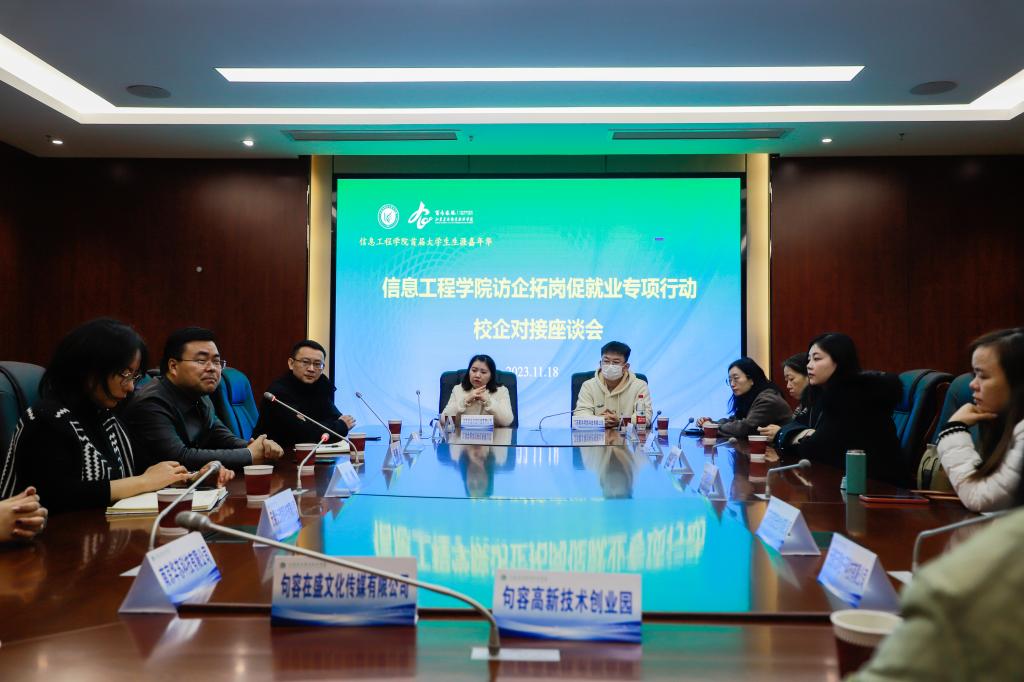 为了更好的做好2024届毕业生就业工作,11月18日,信息工程学院开展访企拓岗专项行动之校企对接座谈会。信息工程学院院长吴刚山、党总支书记经松、党总支副书记刘梅及与会20家企业参与了本次座谈会。