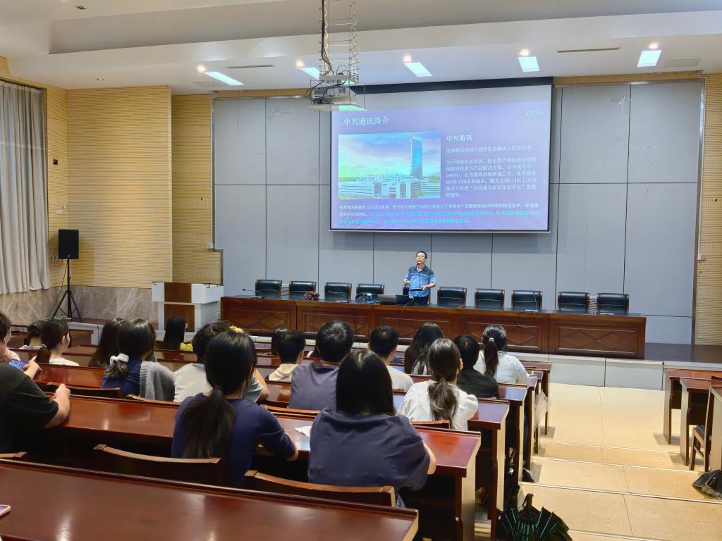 宣讲环节,吴晓庆首先聚焦中兴南京制造基地的核心竞争力展开介绍:作为5G设备核心生产阵地,该基地在智能制造领域兼具应用深度与广度,不仅拥有成熟完善的生产体系,更具备坚实的技术支撑能力,能为员工提供专业且广阔的职业发展平台。随后,他针对基地核心岗位需求重点推介EDA工程师岗位,并结合各岗位的具体能力要求,细致拆解职业发展路径,让同学们清晰掌握岗位适配方向与长期成长空间。此外,他还通过场景化描述,详细讲解基地的工作场景布局、生活配套设施,帮助同学们直观感知职场环境,有效缓解对未来工作的陌生感与不安感。
