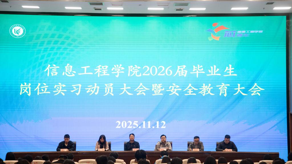 11月12日晚,信息工程学院2026届毕业生岗位实习动员大会暨安全教育大会在图书馆报告厅举行。本次大会以全面启动并深入指导毕业生实习工作为核心目标,学院领导、各系主任、毕业班班主任及390余名毕业生共同参会,为即将开启的职场序曲凝聚共识、明确方向。