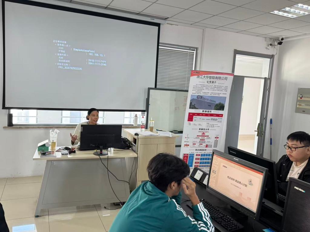 下午的宣讲环节,企业代表依次登台分享。南京司晨视创科技有限公司聚焦数字技术、虚拟现实领域,详细介绍了软件开发、技术推广等岗位的能力要求;宁波阿尔卑斯电子有限公司围绕触摸屏、传感器生产业务,着重强调了对毕业生实践操作能力的重视。软通计算机有限公司带来软件开发、系统集成等热门岗位,其代表清晰阐述了企业完善的人才培养体系和明确的职业晋升路径。浙江大华智联有限公司与杭州海康威视电子有限公司这两家安防领域龙头企业,结合人工智能、大数据的实际应用案例,深入解读了算法研发、嵌入式开发等技术岗位的招聘标准。
