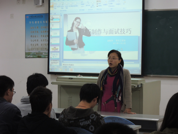 11月3日晚7点在教学楼J1-B307,信息工程系赵陈萍老师组织举行了“简历制作与职场礼仪专题培训讲座”。信息工程系与机电工程系同学来听取了这次讲座。