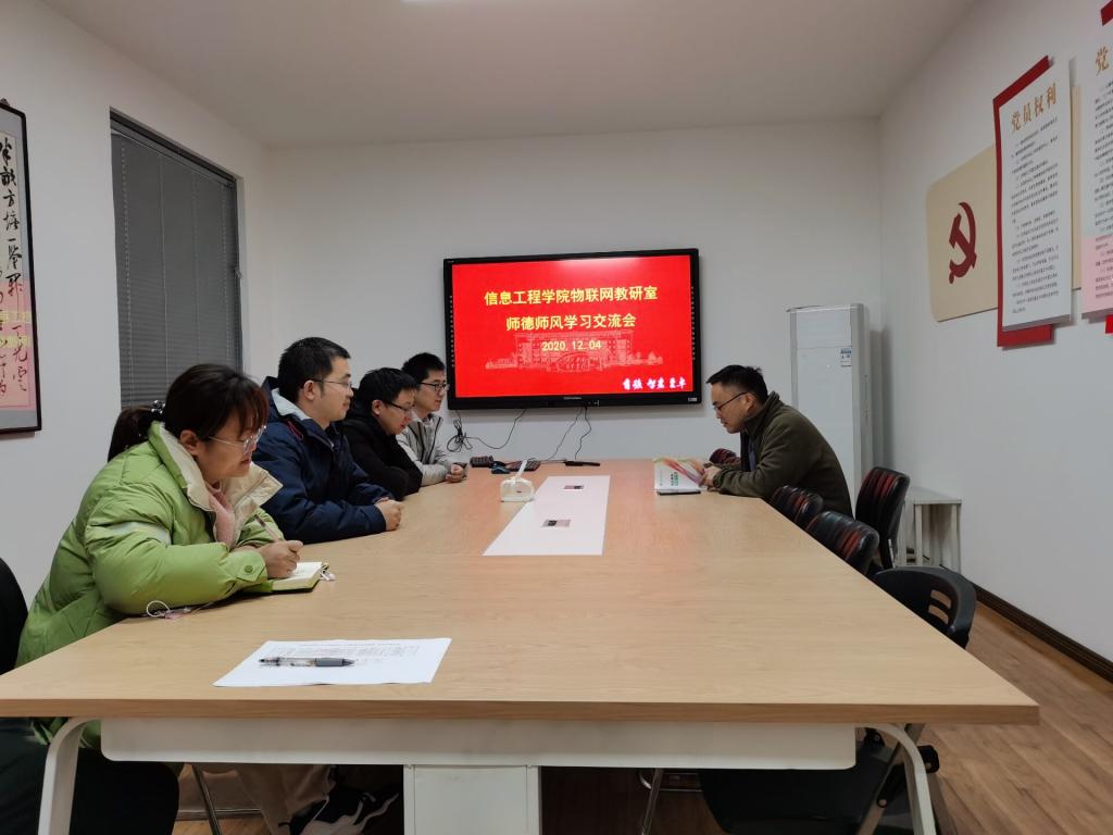 为进一步贯彻党的教育方针,推进师德师风建设活动的深入开展,12月4日,信息工程学院物联网教研室在工科楼B406开展“师德师风”学习会议,物联网教研室相关教师参加了此次会议,会议由物联网教研室主任蒋其友老师主持。