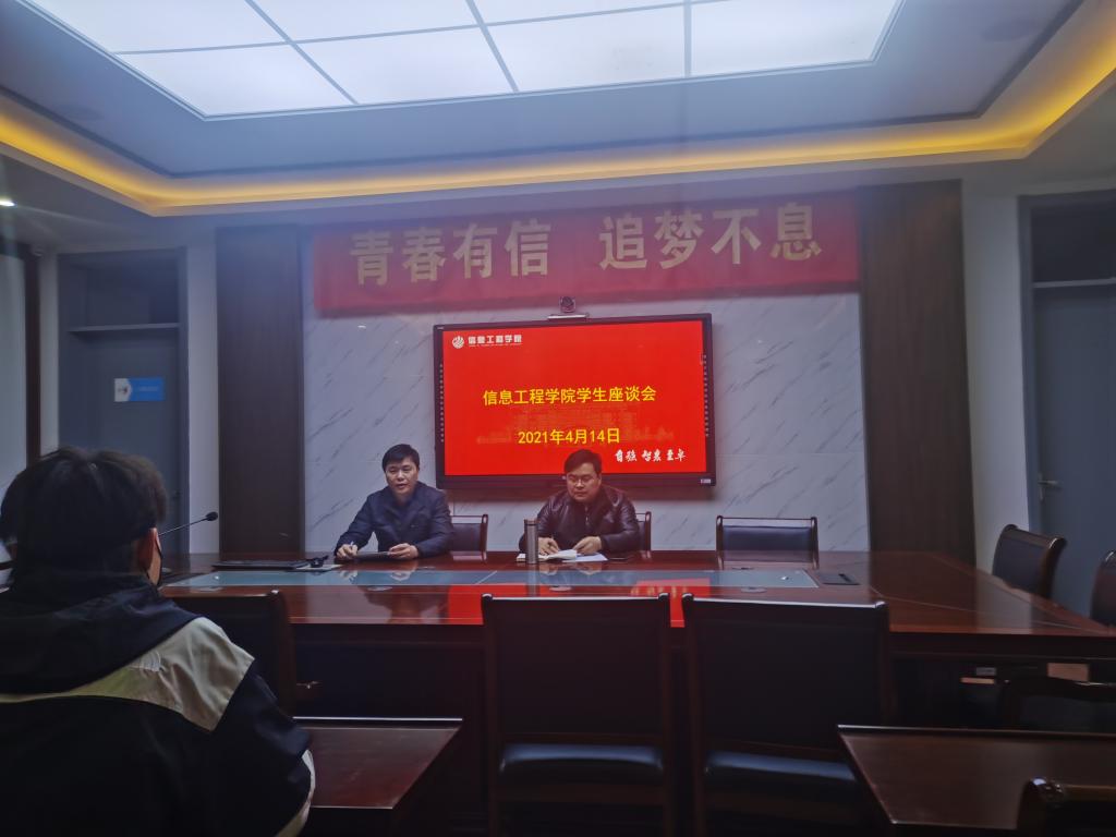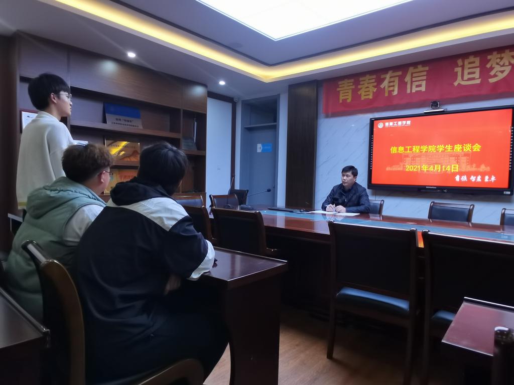 4月14日晚,信息工程学院在B404召开本科班学生座谈会,院长吴刚山、副院长田崇峰出席,物联网工程(4+0)、物联网工程(专转本)班级学生代表参加。