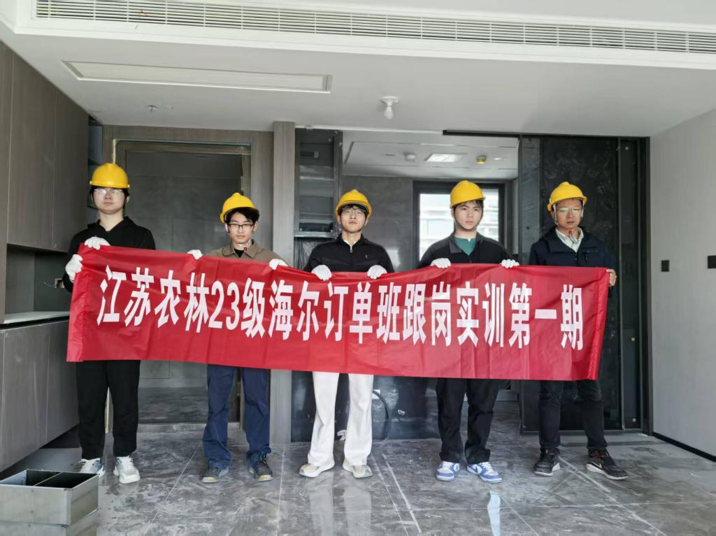 第一期校外实践实训活动从2025年10月20日至10月24日,由薛小松老师带队,实践项目为南京金地都会峯范项目,该项目由南京金地地产和安徽卓瑞地产联合开发,位于南京市栖霞区恒广路与兴学路交界处,项目总户数为800户,其中智慧家庭系统由海尔承担供货、设计、安装、调试、运维等工作。该项目可为海尔订单班学生提供真实场景实操实训,提前融入企业岗位和环境,锻炼综合职业能力。该活动结束后,同学们纷纷表示这种模式能让学生提前进入真实工作场景,培养企业岗位所需要的真实工作技能和学生将来的就业能力,为后续的职业生涯奠定良好的技能基础。