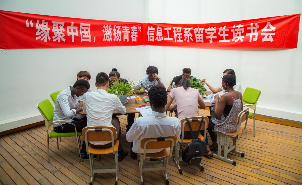 为了使信息工程系留学生更好地融入汉语学习,养成“爱读书、读好书、善读书”的良好习惯,我系于6月26日下午举办了“缘聚中国,激扬青春”留学生读书会活动。