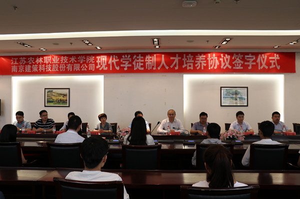 5月24日下午,信息工程系与南京建策科技股份有限公司现代学徒制人才培养协议签字仪式在图书馆中层干部会议室举行。学院副院长简祖平、南京建策董事长王继锋、教务处处长赵明珍、信息工程系主任吴刚山以及40多名师生代表参加此次签字仪式。