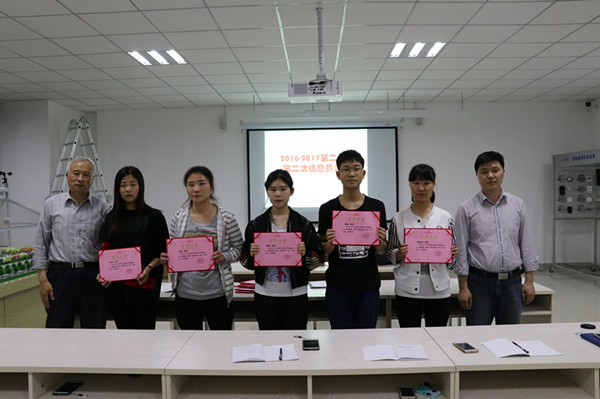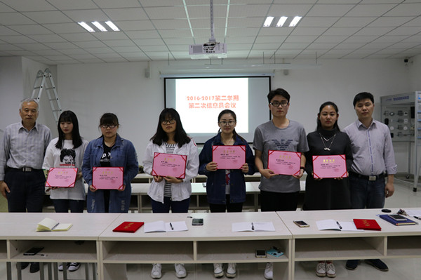 在本次信息员会议上,首先对16-17学年第一学期的优秀信息员进行了表彰,本次表彰了5位优秀信息员和6位工作积极奖;随后,田主任就系部导师制教学、校内技能大赛、上课情况反馈等方面要求各位信息员做好带头表率作用,并且着重强调期中考试相关工作。最后,夏老师对教学信息员进行了工作上的辅导,要求大家在期中考试阶段加强班级教学工作的管理,以保证本学期学习活动正常有序。