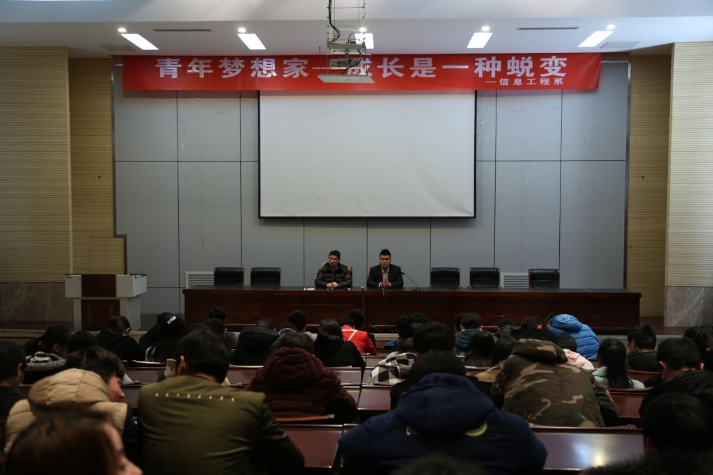 2月28日,信息工程系成功举办了“青年梦想家——成长是一种蜕变”专题讲座,演讲嘉宾为2014届物联网专业优秀校友童苏先生。他在校期间曾担任系学生会主席,现为南京我爱我家房产中介公司两家门店店长。