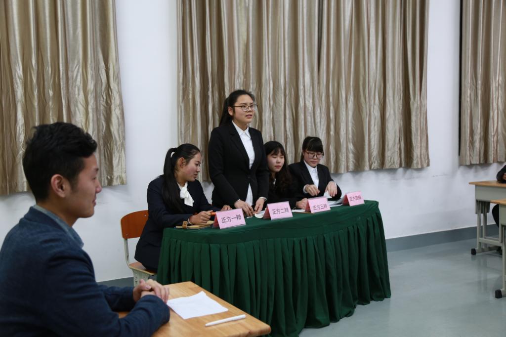 学生辩论赛分为“阐述观点”、“互相提问”、“自由辩论”三个环节。辩论场面激烈,双方势均力敌,第一轮握手言和。最终在加赛中反方队通过技高一筹的临场应对能力取得了本次比赛的胜利。