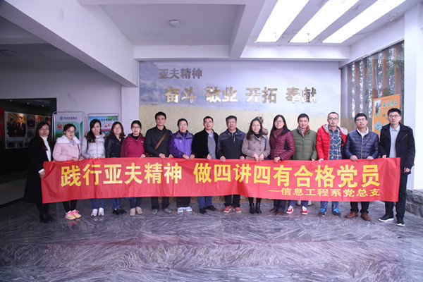 为加强党员同志的理想信念和革命传统教育,12月4号,信息工程系党总支赴亚夫纪念馆和新四军纪念馆,开展做“四讲四有”合格党员专题活动。