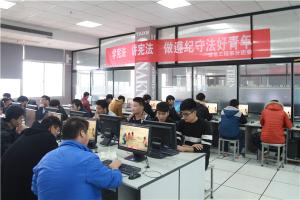 本次活动分为两个环节。12:30,信息工程系分团委学生会主要学生干部在5#楼服务站开展了读宪法、学宪法学习会议。学习会议上,系学生会宿管部部长孟德葆同学作为学生党员带头朗读宪法,深入学习逐个条例,结合案例分析,形象直观地带领学生干部通读宪法全文。15:30,在图书馆四楼2、4机房,分团委以学习小组的形式将培训过的主要学生干部分配到16级100余名新生当中,带领新生观看“12•4国家宪法日”宣传视频,全方位了解宪法的重要地位。