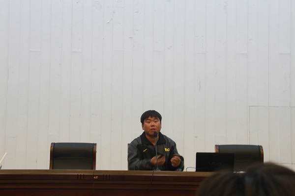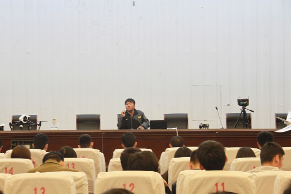 11月3日晚,信息工程系在图书馆报告厅举办“无人机发展与应用”讲座,系副主任田崇峰主持。