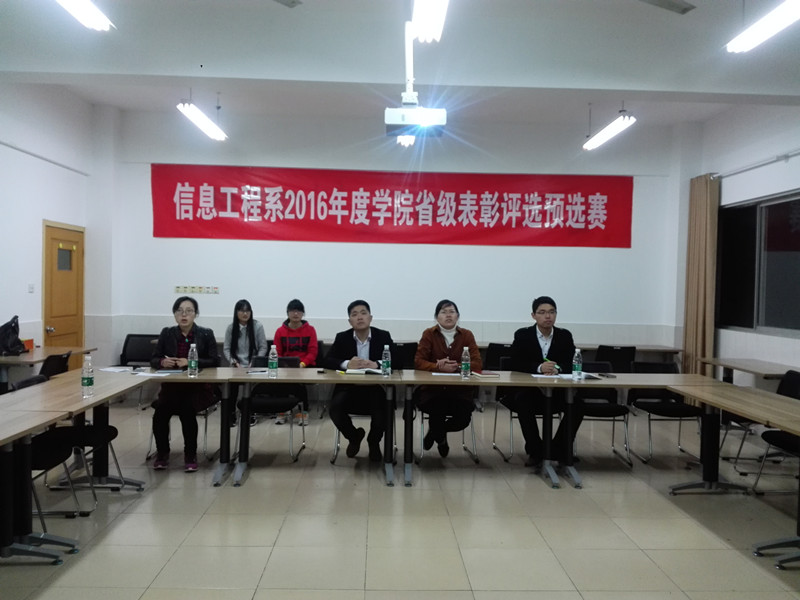 根据苏教学[2016]4号《省教育厅、团省委关于评选2016年度江苏省普通高校省级三好学生、优秀学生干部和先进班集体的通知》的文件精神,为了在评选推荐的过程中坚持标准,保证质量,全面衡量。4月11日晚上,我系在综合楼西204培训教室开展了省级评选的预选赛。
