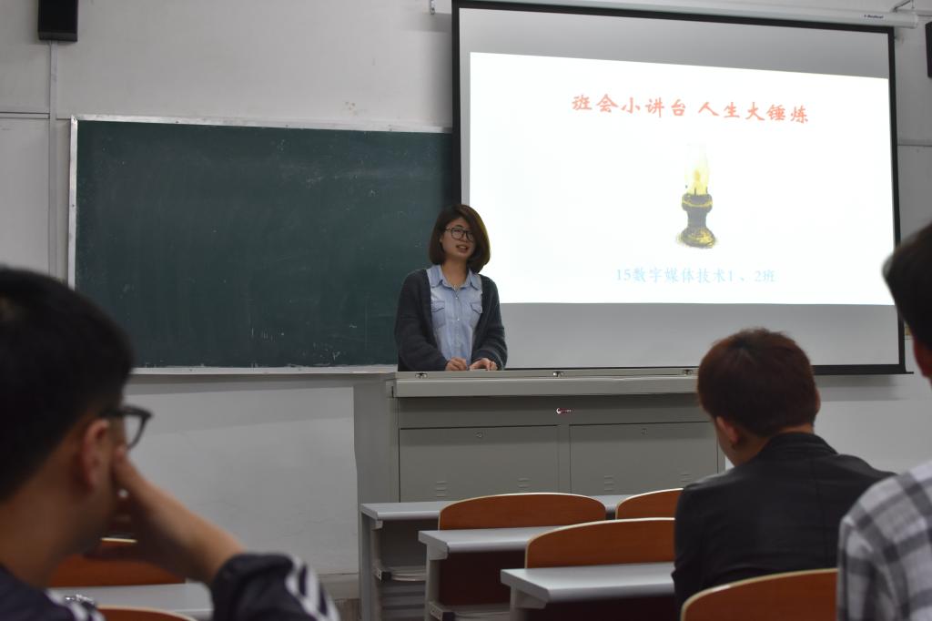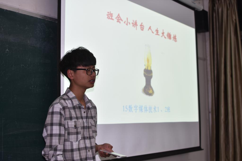 为了充分利用晚自习学习时间,丰富学生学习生活,信息工程系15数字媒体技术1、2班开展“班会小讲台、人生大锤炼”主题微演讲班会活动,全班42名同学在一个学期的周期里均能得到数次上讲台展示自己的机会。