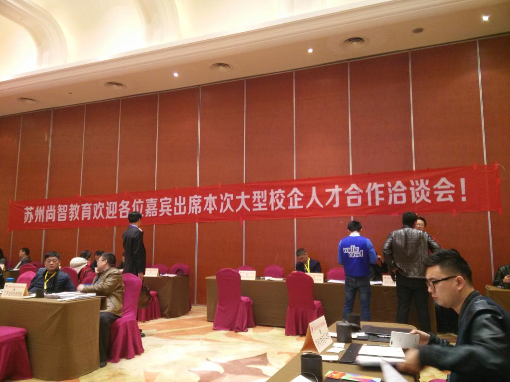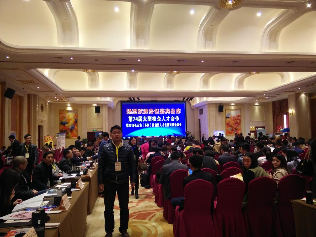 3月29日上午,我系就业辅导员刘凯文应邀参加由苏州尚智教育信息咨询有限公司主办的“大型校企人才合作暨2016长三角(苏州)技能型人才供需对接洽谈会”。
