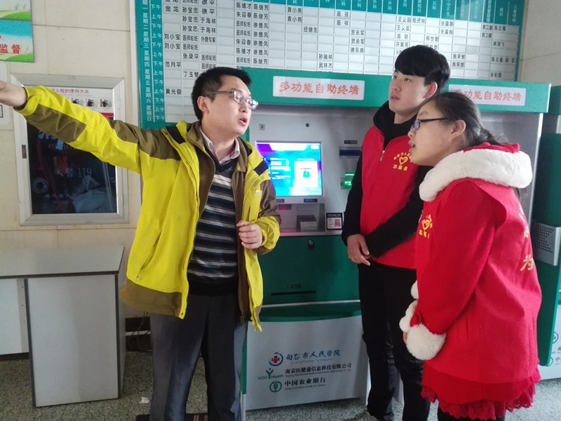 中午12:30,志愿者抵达市人民医院,在医院薛书记的安排下,志愿者经过系统的培训,被分配到四个岗位,很快就投入到志愿服务工作中。本次志愿服务工作主要分为三个岗位,第一岗位是志愿者在门诊大厅和二楼导医台维持各窗口就医秩序和引导患者进行自助系统进行挂号、缴费、取报告。第二岗位是在检查室为患者提供关爱和帮助,引导患者有秩序的进行身体检查。第三岗位是志愿者参与到医院的急救环节,负责病患的转移等急救协助工作。