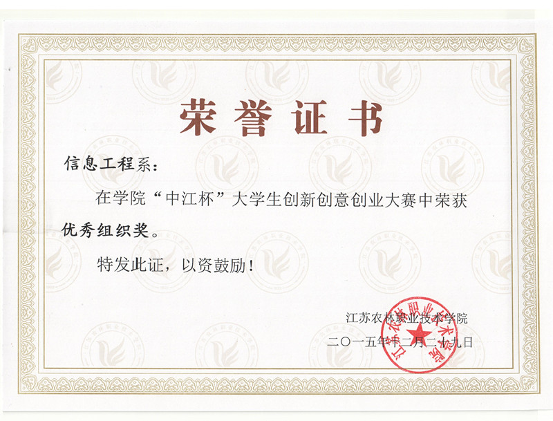 2015年12月7日至8日,信息工程系经过系部初选,一共评选出18个优秀项目参与院级比赛,经过学生投票与专家评审两个阶段后我系共有7个项目获奖。许燕萍,江进老师获得了“优秀指导教师”荣誉称号,系部荣获“优秀组织奖”。