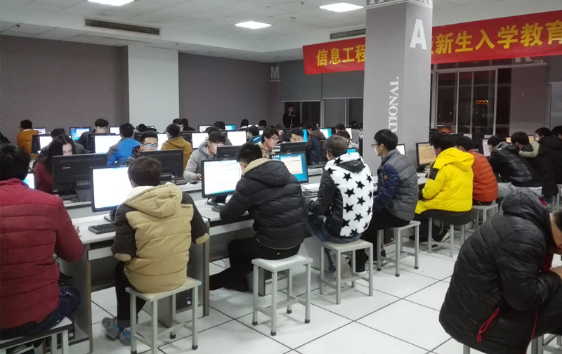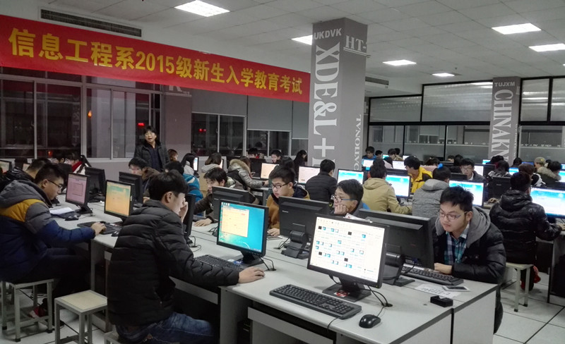 12月27日19:00,信息工程系在本部图书馆四楼机房和茅山校区机房同时开展了2015级新生入学教育总结上机考试。