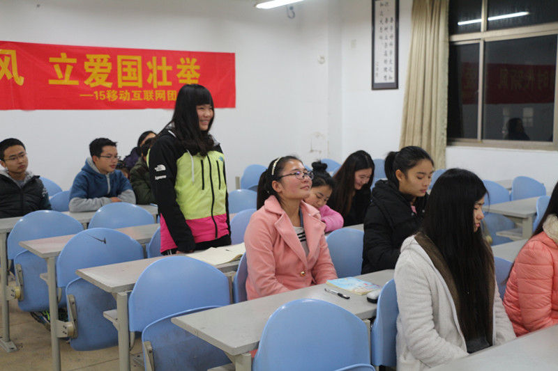 12月10日晚上19时,15移动互联网班在J1B-510教室举办了纪念一二九运动主题班会,本次班会由团支书高楠楠主持,辅导员、分团委学长、学姐来参加了活动。
