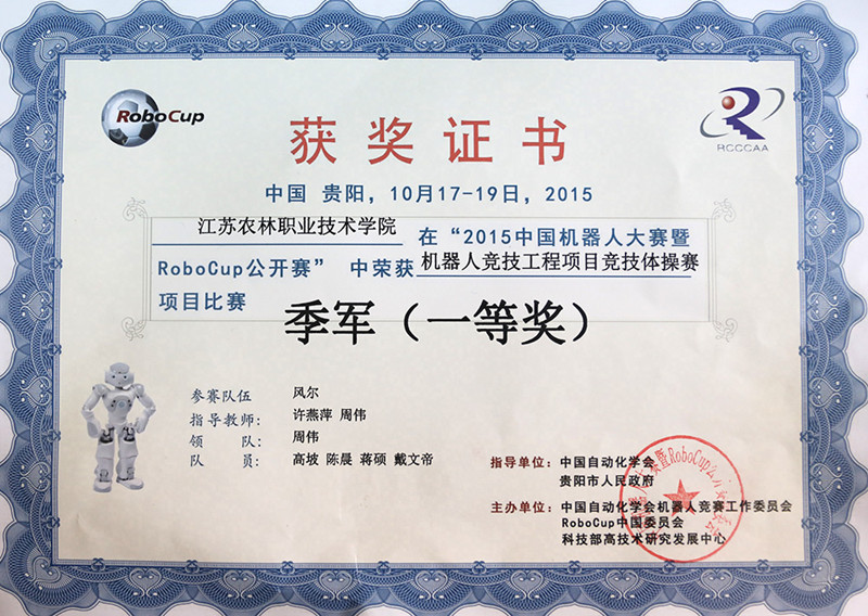 10月17-19日,2015中国机器人大赛暨RoboCup公开赛总决赛在贵阳举行,我系周伟、许燕萍老师带领的3支队伍参加了本次比赛,并取得1个一等奖,2个二等奖的佳绩。