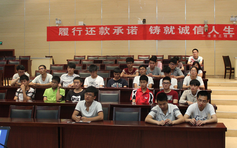 6月11日19:00,我系召开了“履行还款承诺,铸就诚信人生” 2015届毕业助学贷款诚信还款宣讲会,会议由辅导员刘梅老师主持的,全系申请助学贷款的2015届毕业生参加了此次会议。