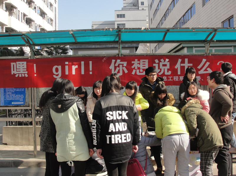 为了让同学们勇敢的说出自己的心声,表达自己内心的想法,替同学们传递勇气。信息工程系女生部和心育部于12月22号12点在食堂门口举行以“轻轻诉说,传递心声”为主题的活动。