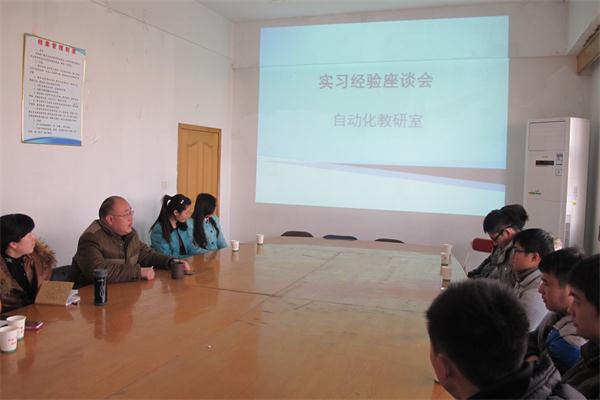 2014年3月5日下午,我系自动化教研室在综合楼304召开学生实习经验座谈会,主要针对于11届应用电子技术专业的实习返校生,进行实习经验的交流。自动化教研室全体教师以及应用电子专业的部分实习返校生参与会议。 会议主要针对于学生的实习经验,实习收获,以及对毕业后工作的规划做了详细的交流,学生踊跃发言,会议气氛热烈融洽。此次会议对于学生以及老师在专业学习与学生就业的认识方面起到了很好的作用。