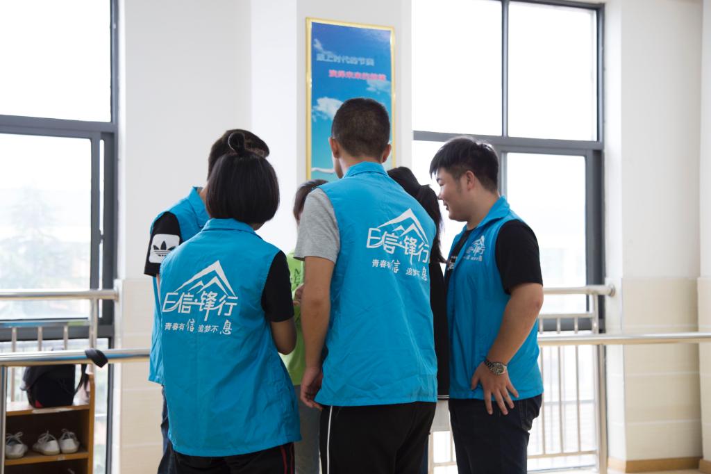 9月27日下午,在天王镇妇联的协调和帮助下,带着全院师生的爱心,信息工程学院心育部和E信.锋行社志愿者们来到天王中学,和戴欣同学进行了深入的沟通和交流,志愿者们将募捐来的善款以及志愿者们特别制作的爱心留言簿、书包、中秋月饼交在戴欣手里。为了帮助戴欣同学树立起生活的自信心,心育部特邀请了戴欣同班的6位留守儿童参加活动,并为他们专门制定了不一样的心理团辅。团辅过程中他们认识自我、肯定自我,在欢快的游戏活动中寻找自信心。