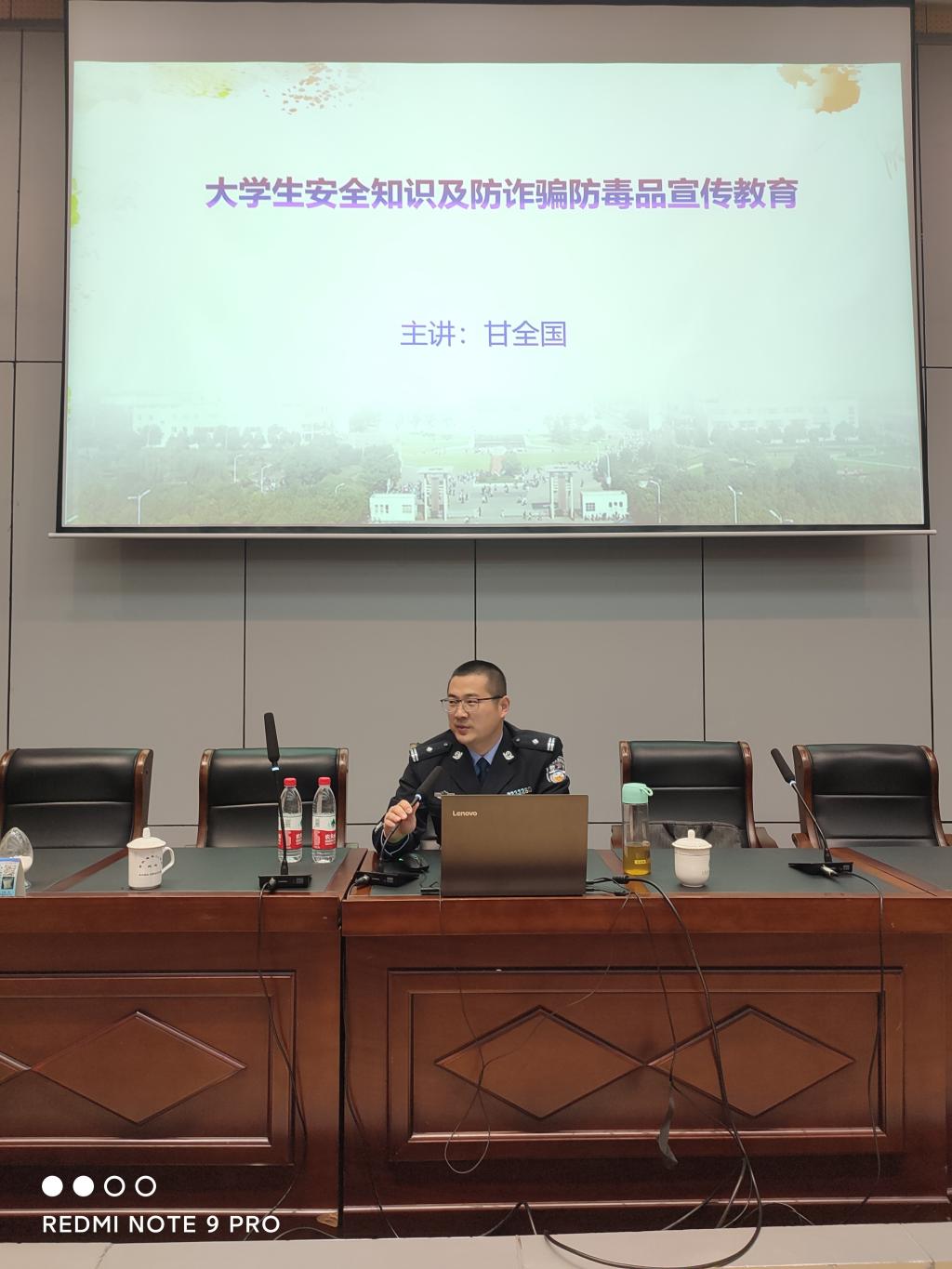 12月19日下午三点,信息工程学院组织2020级新生在研发楼报告厅开展安全知识讲座。本次讲座特邀江苏省太湖强制隔离戒毒所副教导员甘全国为主讲人。